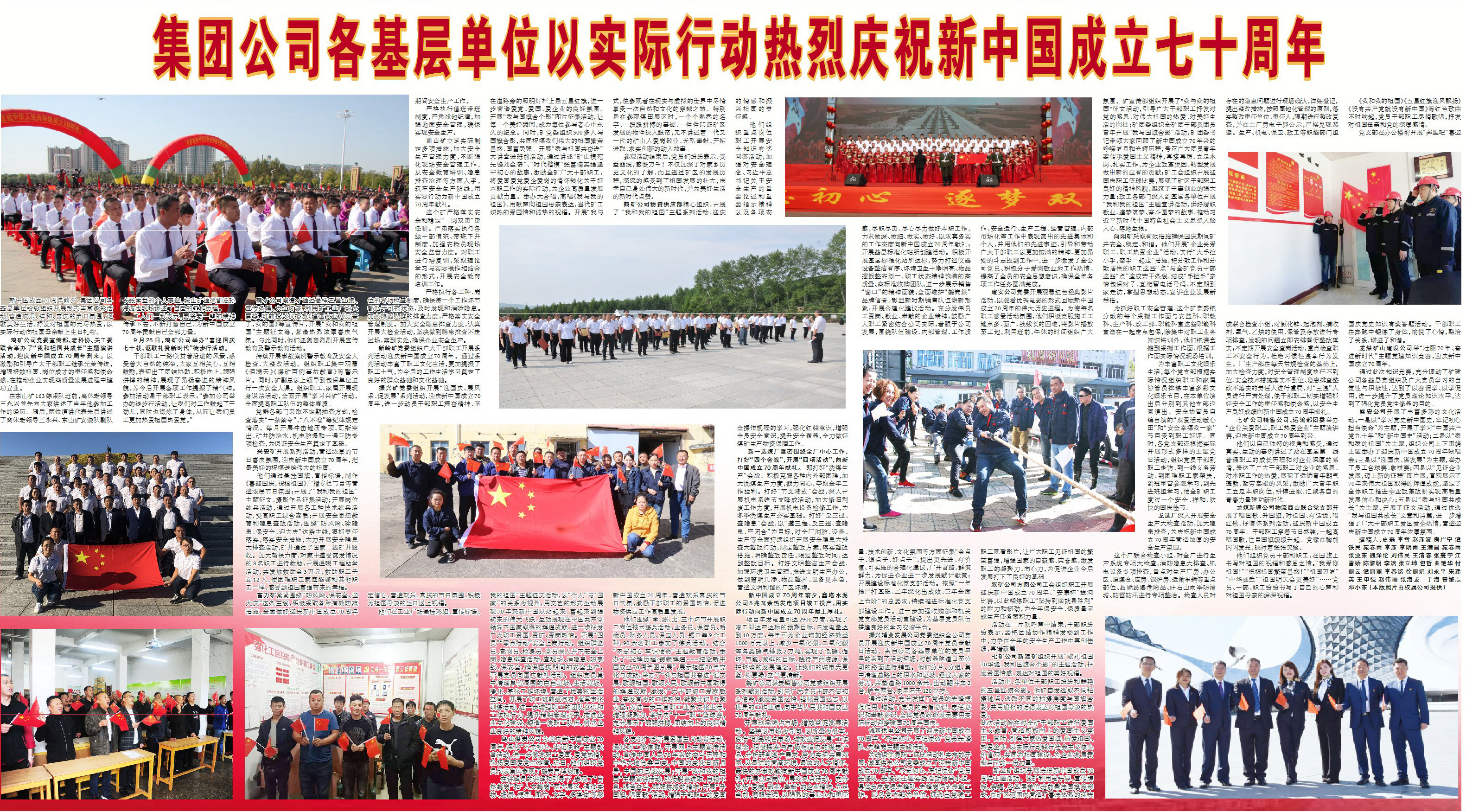 ¡¡¡¡Ð˰²¿ó¿ªÕ¹ÏµÁÐÔ˶¯£¬ÓªÔìō֨µÄ½ÚÈÕϲÇìÆø·Õ£¬ÓÇìÐÂÖйú½¨Éè70ÖÜÄ꣬°Ñ×îÓÅÃÀµÄ×£¸£Ë͸øÎ°´óµÄ׿¹ú¡£