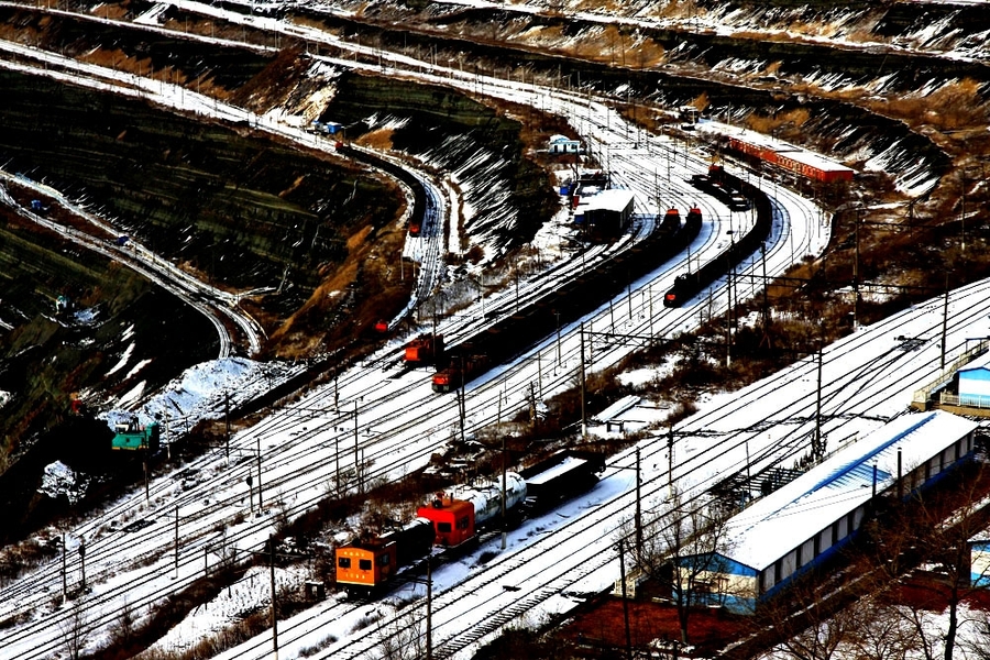 铁道线上,有一列火车,正在有条不紊地装车,煤仓口下涌动的煤流,把一节节车皮装满,从装满车箱内散发出一股股的热气,这些热气在晨光的映射下,让冬日的矿山越发五彩美丽。