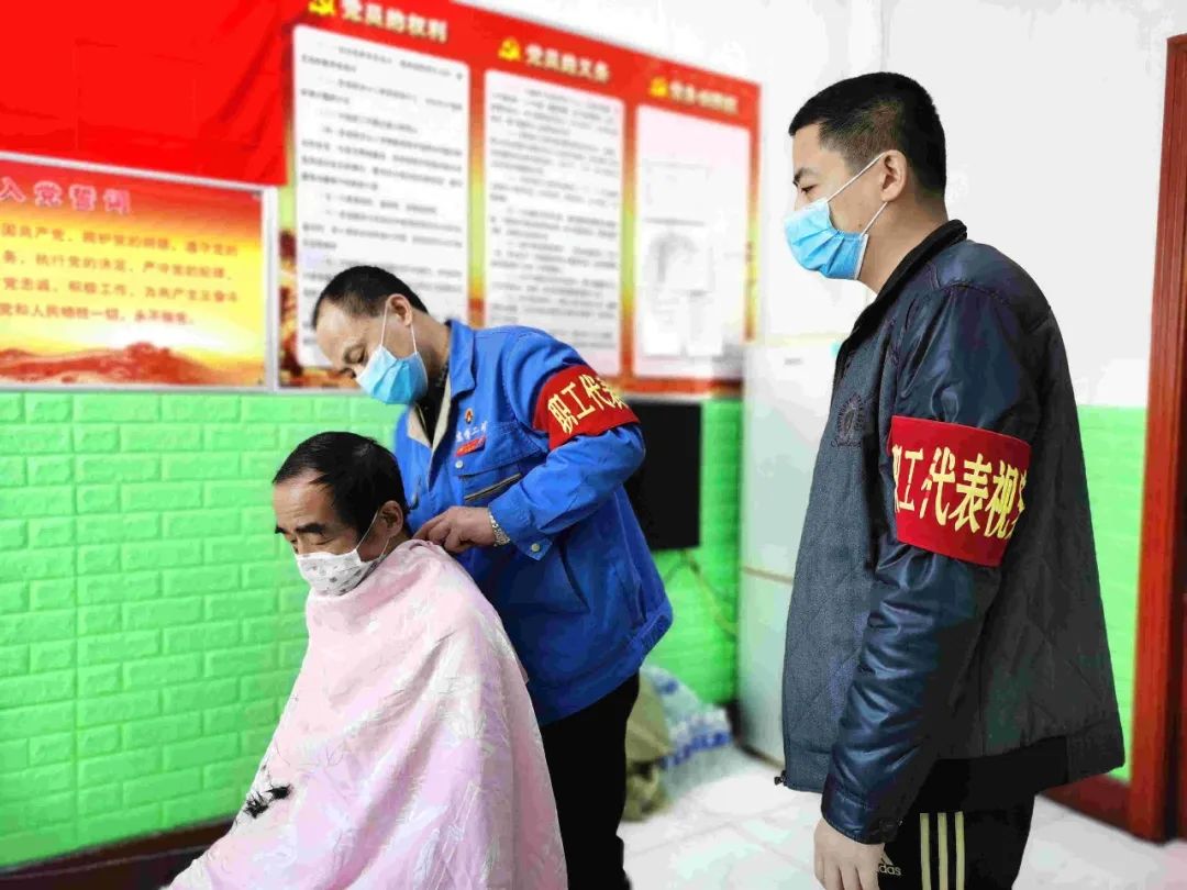“各单位、各部室,在疫情防控时代,为更好地服务在岗职工,矿工会特组织职工代表为职工义务剃头,请实时向职工转达。”2月23日一大早,东荣二矿党群干部微信群里就被这样一则暖心通知刷屏了。