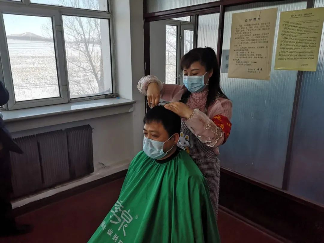 城山煤矿团委组织给复产复工职员剃头