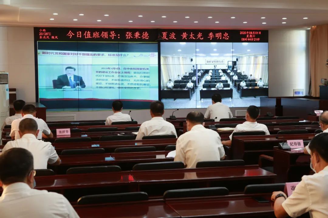 鸡西矿业公司党员向导干部通过视频聆听党课。摄影 辛海全