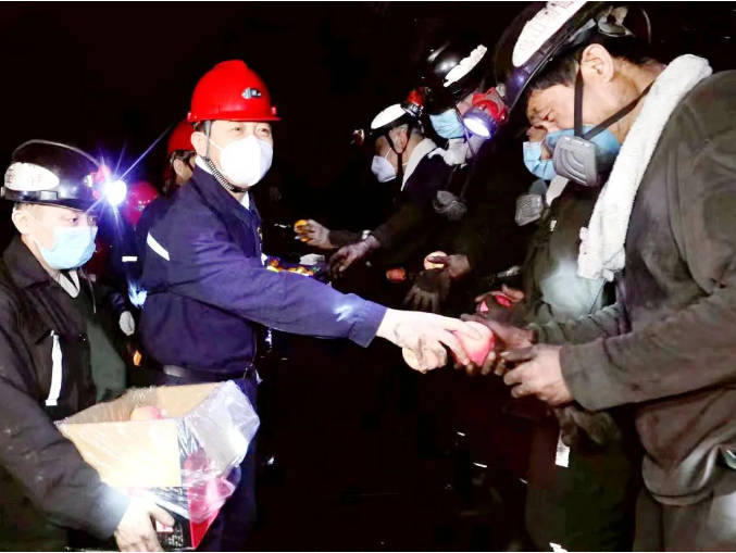 在鸟山矿掘进事人情、综采事人情 ,刘鹏飞代表集团公司党委、集团公司向新年坚守生产一线的干部职工表达了亲热慰问 ,并嘱咐他们严酷兑规作业 ,增强自主保安和现场治理 ,确保清静生产。