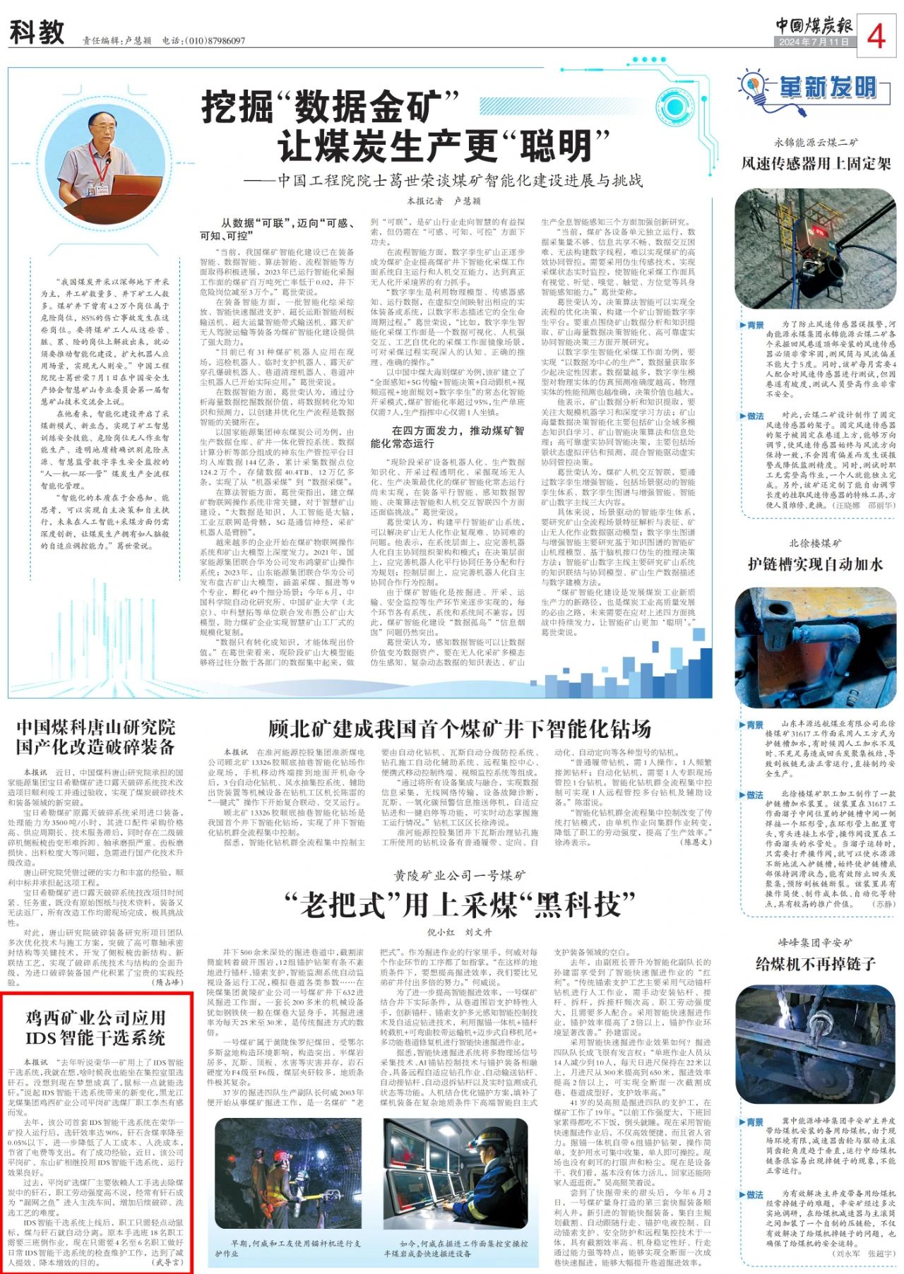 鸡西矿业公司应用IDS智醒目选系统