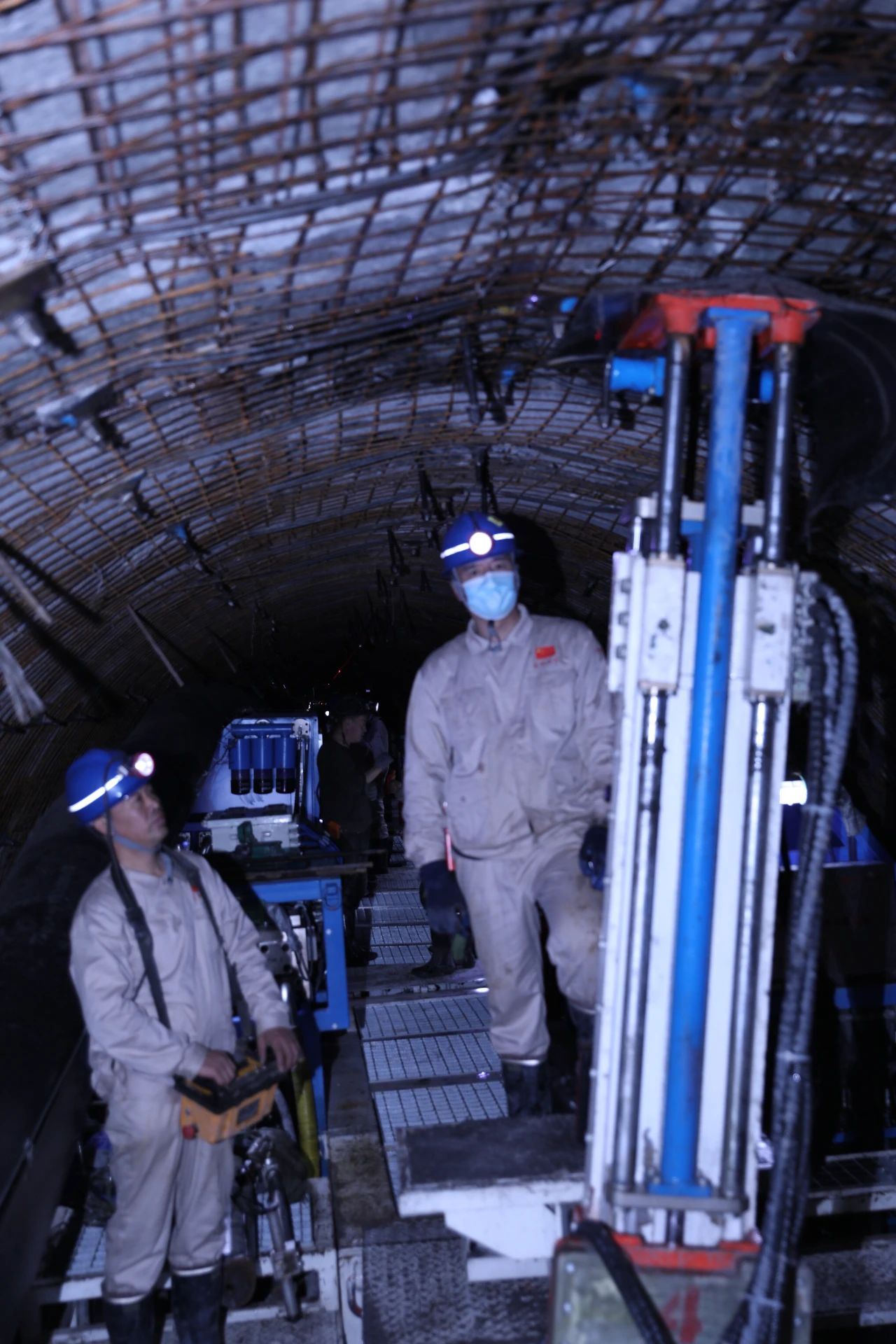 事情职员正在操作矿用盾构机自动打锚杆