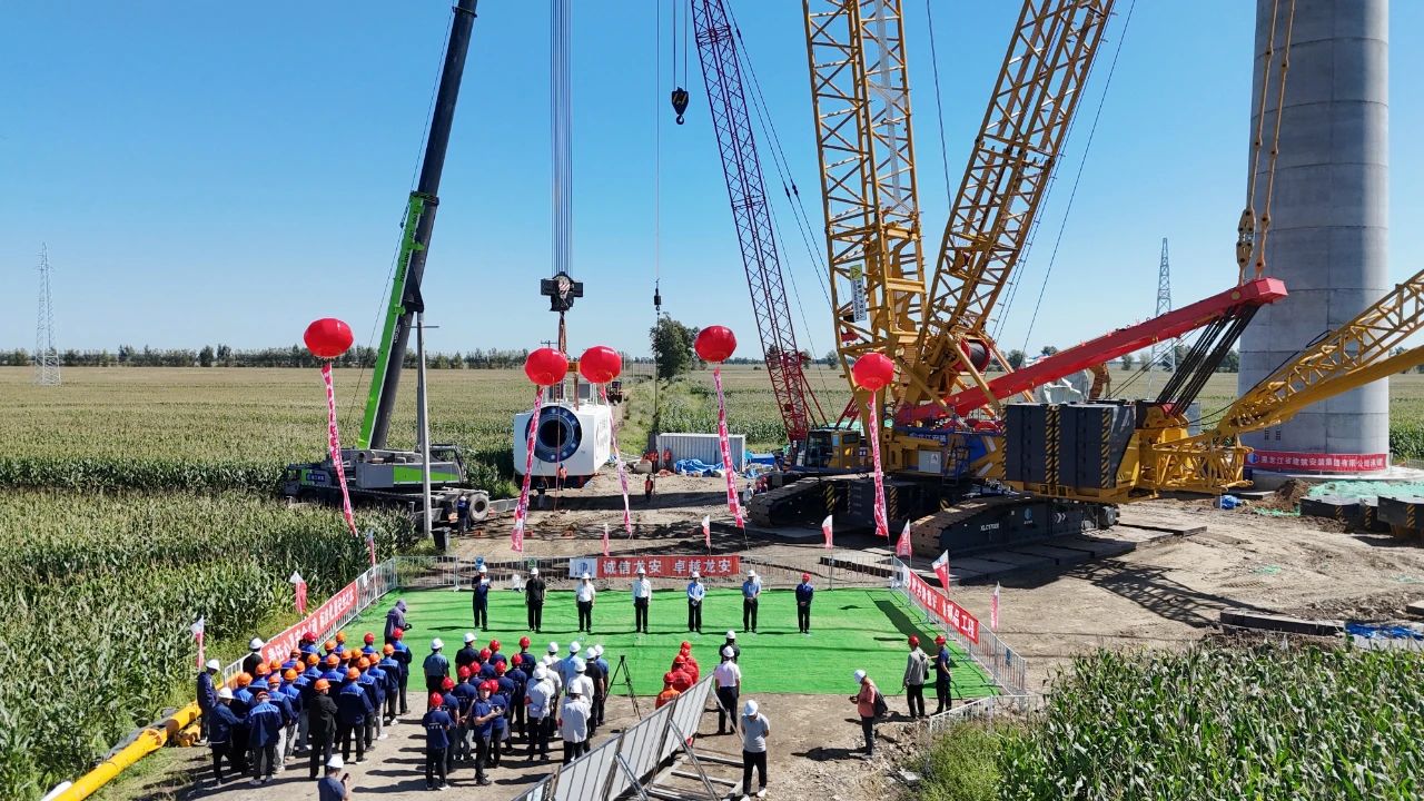 该项目位于双鸭山墟市贤县境内,位列全省重点项目之一。项目占地约297平方公里,总装机容量200兆瓦,施工内容包括装置32台单机容量为6.2MW的风力发电机组,配套新建一座220千伏升压站。项目投运后,预计每年可爆发清洁能源约7.4亿千瓦时,节约标准煤约23.67万吨。项目于2024年3月1日最先首台机组吊装,为推动施工进度,确保吊装作业顺遂实验,项目指挥部团结施工单位、监理单位提前谋划、全心组织,多措并举,严酷落实清静、质量、进度各项包管步伐,起劲协调内外部关系,战胜严寒、阻工、地形疏散等重重难题,历经186天夜以继日的斗争,圆满完成了所有32台机组的吊装事情。