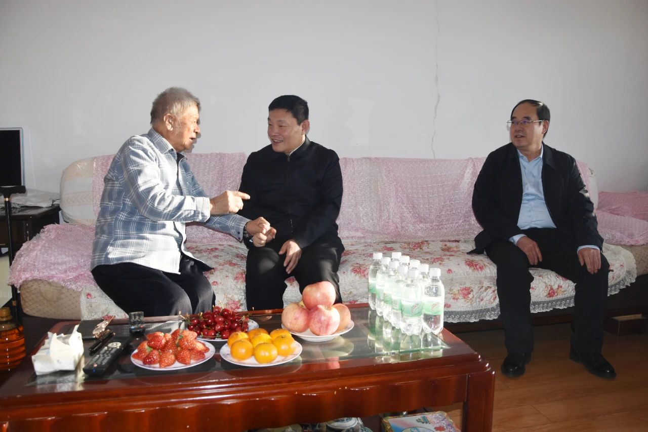 在王永兴家中,王佳喜与王永兴双手牢牢相握、促膝攀谈,详细地询问了他的身体和生涯情形。王佳喜说,您是企业生长的元勋,企业的生长和壮大得益于以您为代表的老同志、老向导、老先进们作出的突出孝顺,希望您能继续体贴和支持企业生长,为推动企业实现高质量生长献计献策。
